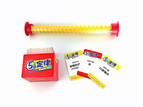 有352個問題和一個5秒計時器,配件和規則都很簡單,遊戲的問題都是一些要求玩家「5秒鐘內說出3個正確答案」的,玩家開始玩前商定好打的輪數,只有遊戲開始。