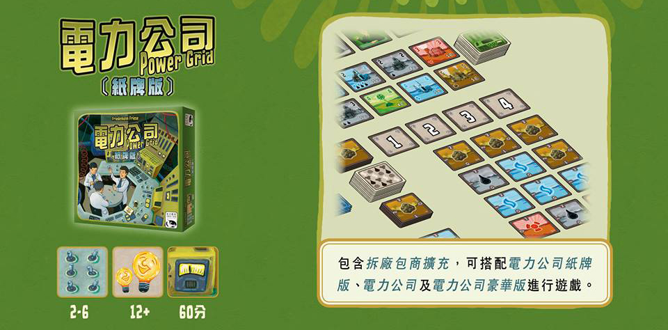*包含拆廠包商擴充,可搭配電力公司紙牌版、電力公司及電力公司豪華版進行遊戲。