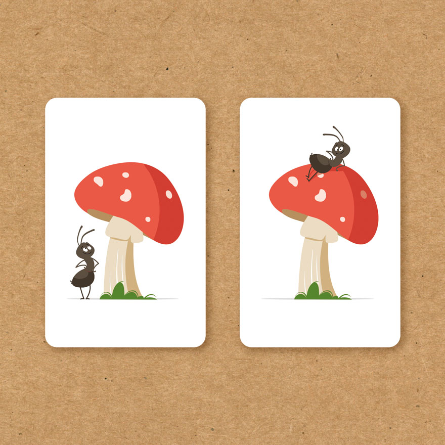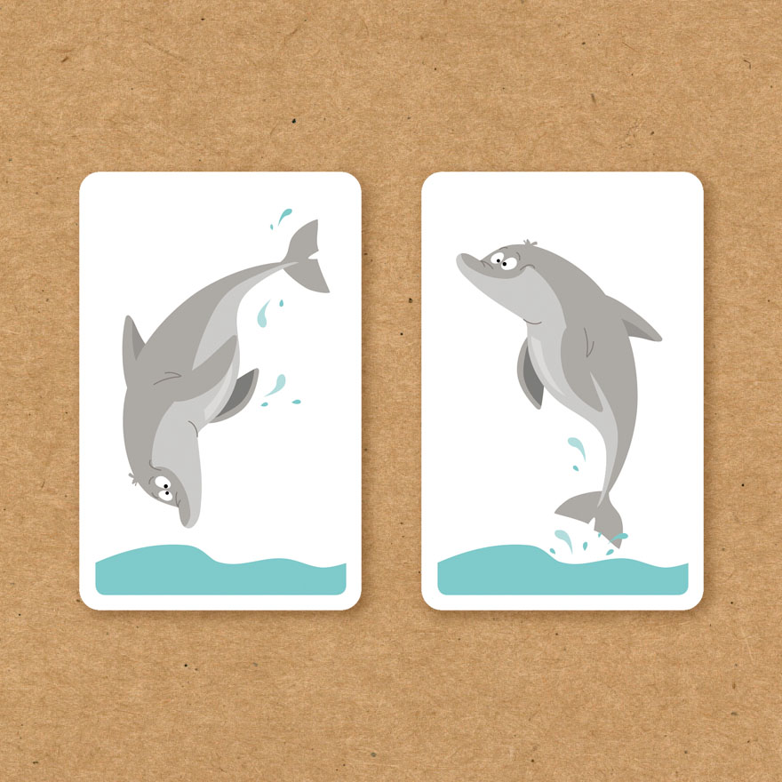 小鳥還繼續飛翔?小男孩還在盪鞦韆嗎?誰最快指出哪張牌被翻面,就可以打出一張手牌在桌上,率先將手牌出清的玩家獲勝!