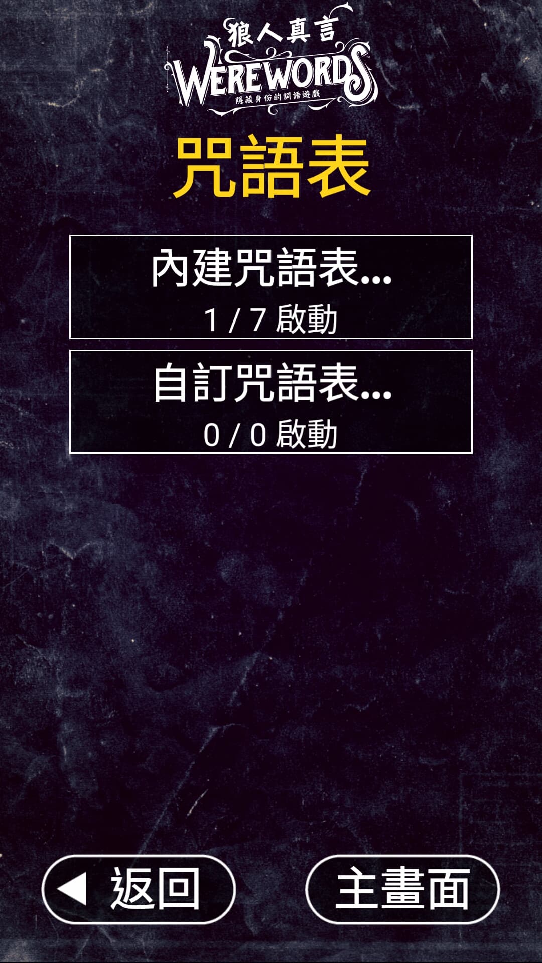 進入咒語表後,可以在「內建咒語表」中選擇想要遊玩的預設詞表類別。欲新增自訂咒語表,請選擇「自訂咒語表」。