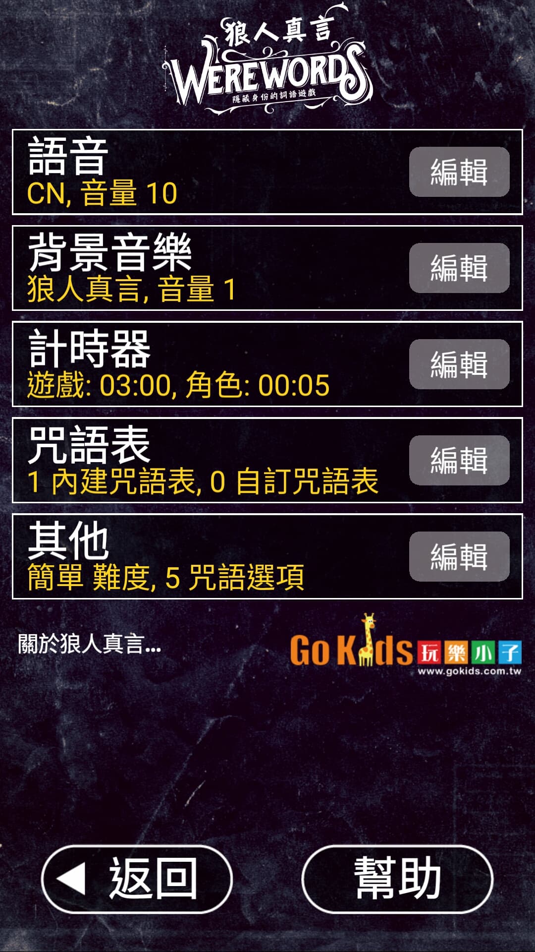 於應用程式首頁點擊齒輪符號後,進入設定畫面,再點選「咒語表」旁的「編輯」