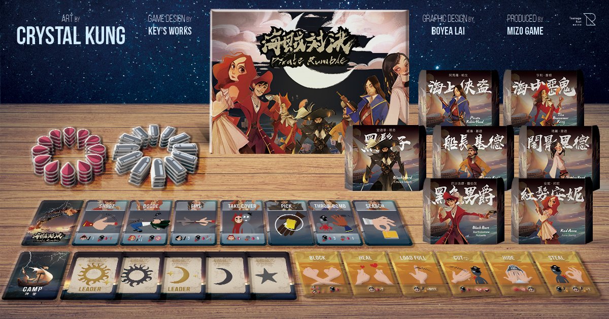 〈海賊對決〉是一款多人對戰的桌遊,因為海賊本身具有浪漫、不羈的史詩感覺,而且不論東西方,「往海洋探索」都是一個共通的流行文化主題。所以我們選擇〈海賊對決〉這個主題,同時也將參加今年全球最大的桌遊展:德國 Essen Spiel 。