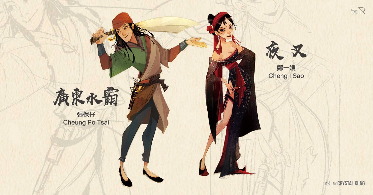 鄭一嫂:是我這次畫作中,跟團隊討論最多次的一次,因為他是一個聞名世界的東方女海賊,我們希望可以呈現他的嫵媚但又具威脅性的美麗,看史料覺得鄭一嫂根本海上武則天啊~遊戲設計師把她的能力設計得非常厲害!