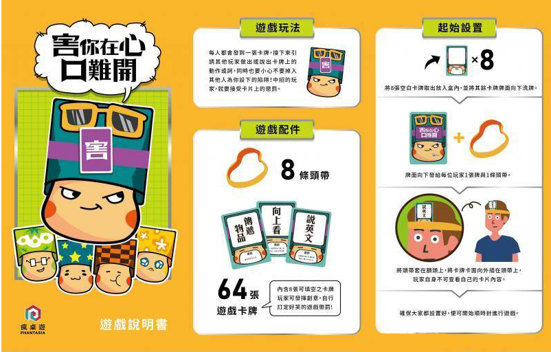 這是一款心機的派對桌遊,你要想辦法讓別人說出自己頭上的禁忌詞,同時也要小心不要說出自己的禁忌詞哦!