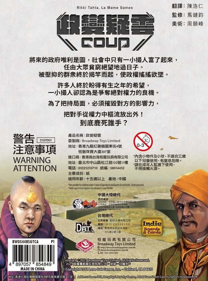 當只剩你一人尚未退出遊戲,你即成為這場政變的勝利者。