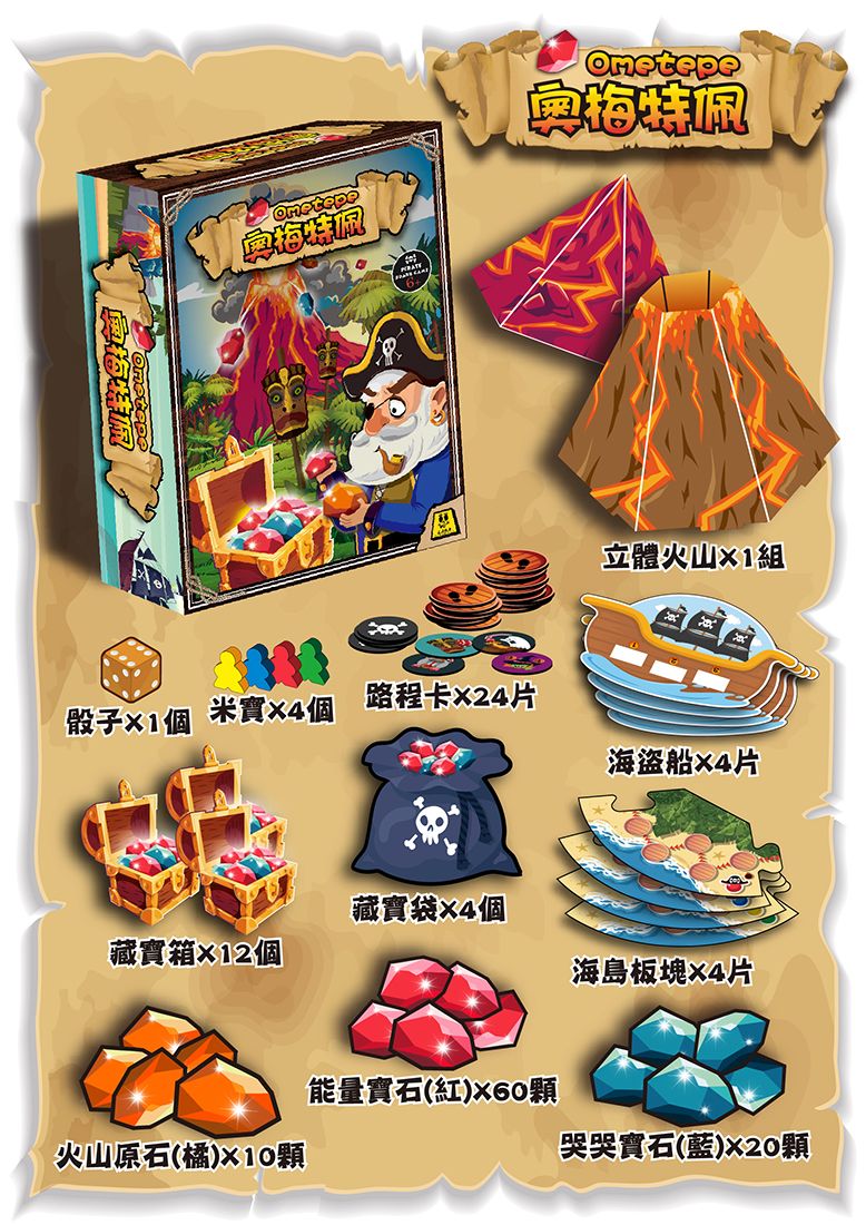 冒險只需要記憶和運氣,一款純粹、瘋狂、耐玩的奪寶遊戲,適合全家的親子桌遊即將展開!!船員們集合!我!將成為獨霸這座火山的海盜王,快來搶奪最珍貴的火山原石吧!