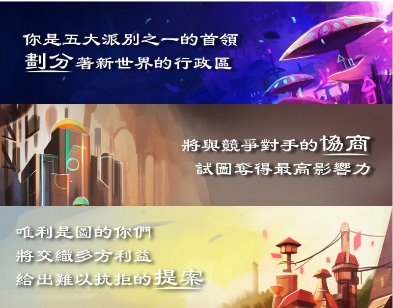 喜歡區域控制或競標的玩家切勿錯過,沒玩過區域控制加競標的玩家更要體驗看看。