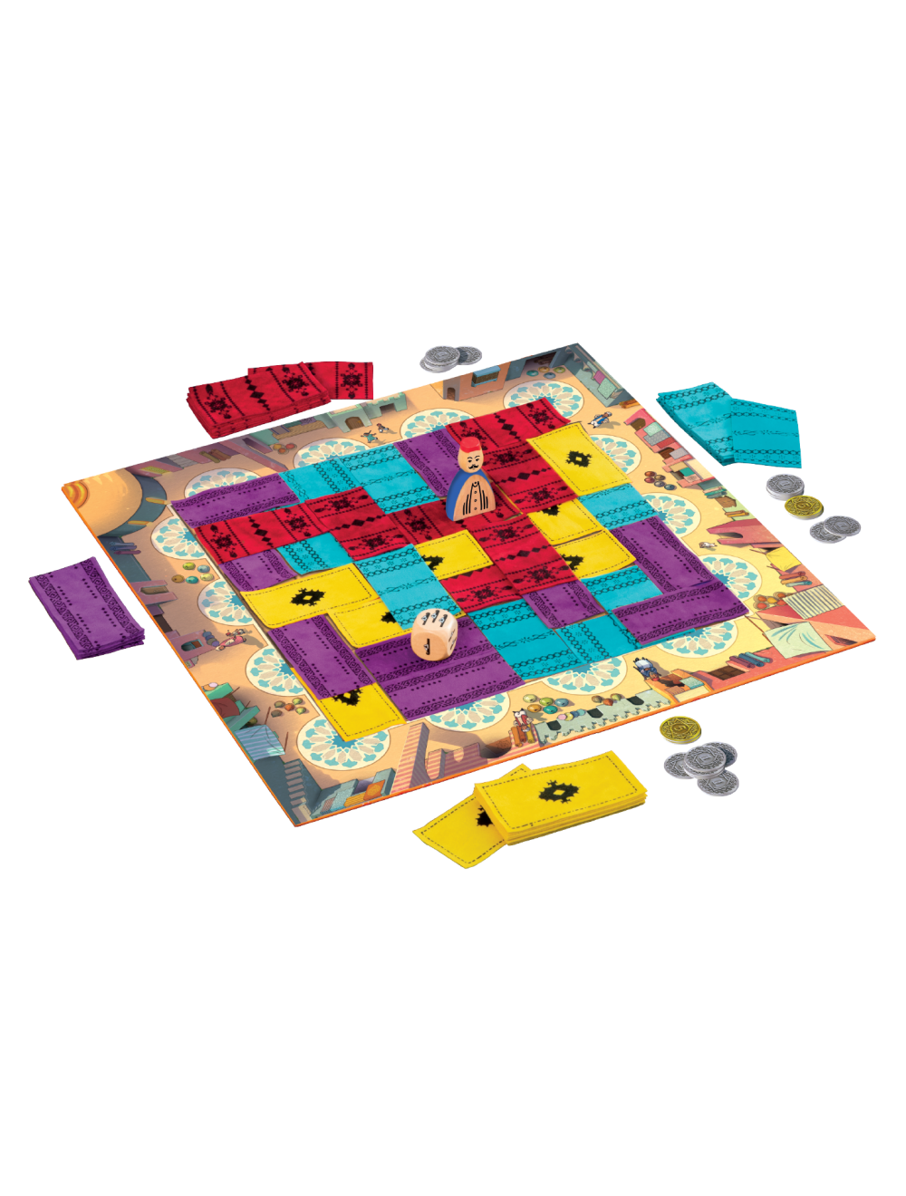 每個玩家都是銷售人員,試圖智取他人。每個玩家輪流擲骰子,然後移動市場經理阿三。如果阿三停在對手的地毯上,銷售人員必須付錢給地毯主人之後,才可以在相鄰空間放一張自己的地毯。當最後一張地毯鋪上時,每位玩家加總自己在市集上可看見的地毯總數和金錢,最富有的玩家獲勝!
