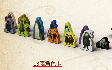 規則書P2角色棋子圖示的標題「13張角色卡」為誤植,正確敘述為「13個角色棋子」