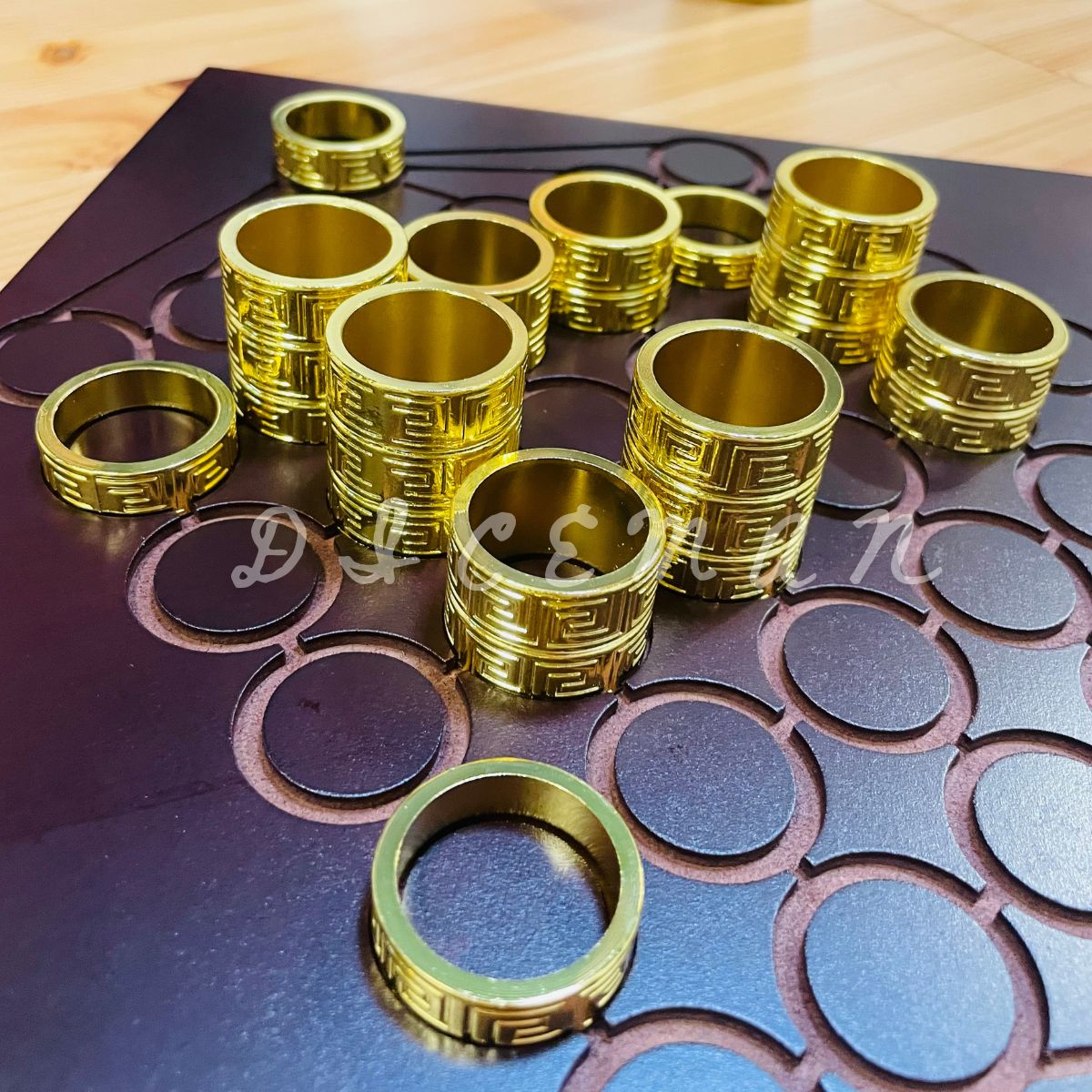 遊戲由雙方在各自的初始線布陣開始,你得在 6 個空格中秘密定下 2 單、2 雙、2 三層戒指的位置 。